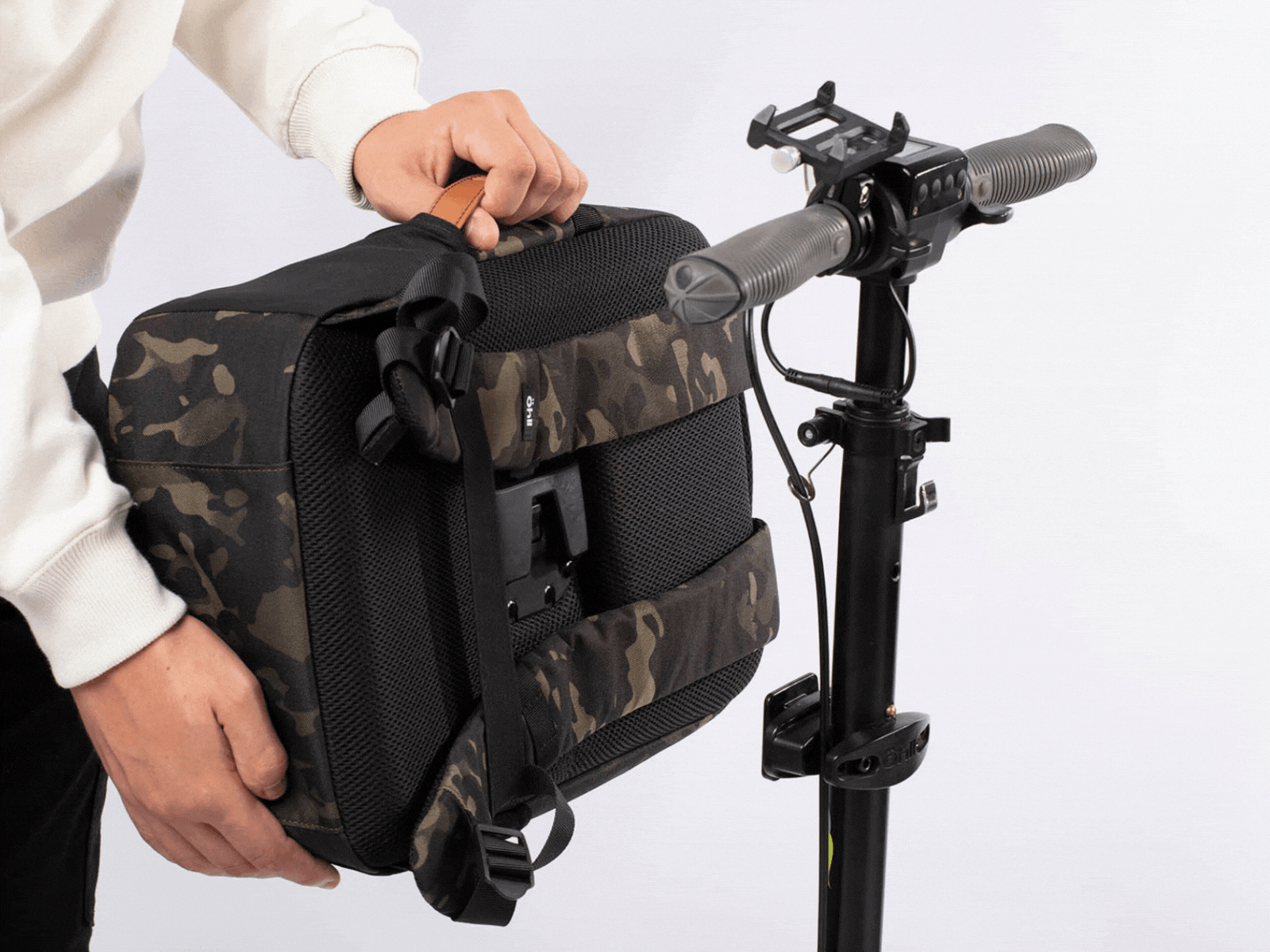 Challenge the conventional with the only backpack on the market that you won't have to carry on your back when riding your folding bike or electric scooter. Say goodbye to back sweat and love your ride.