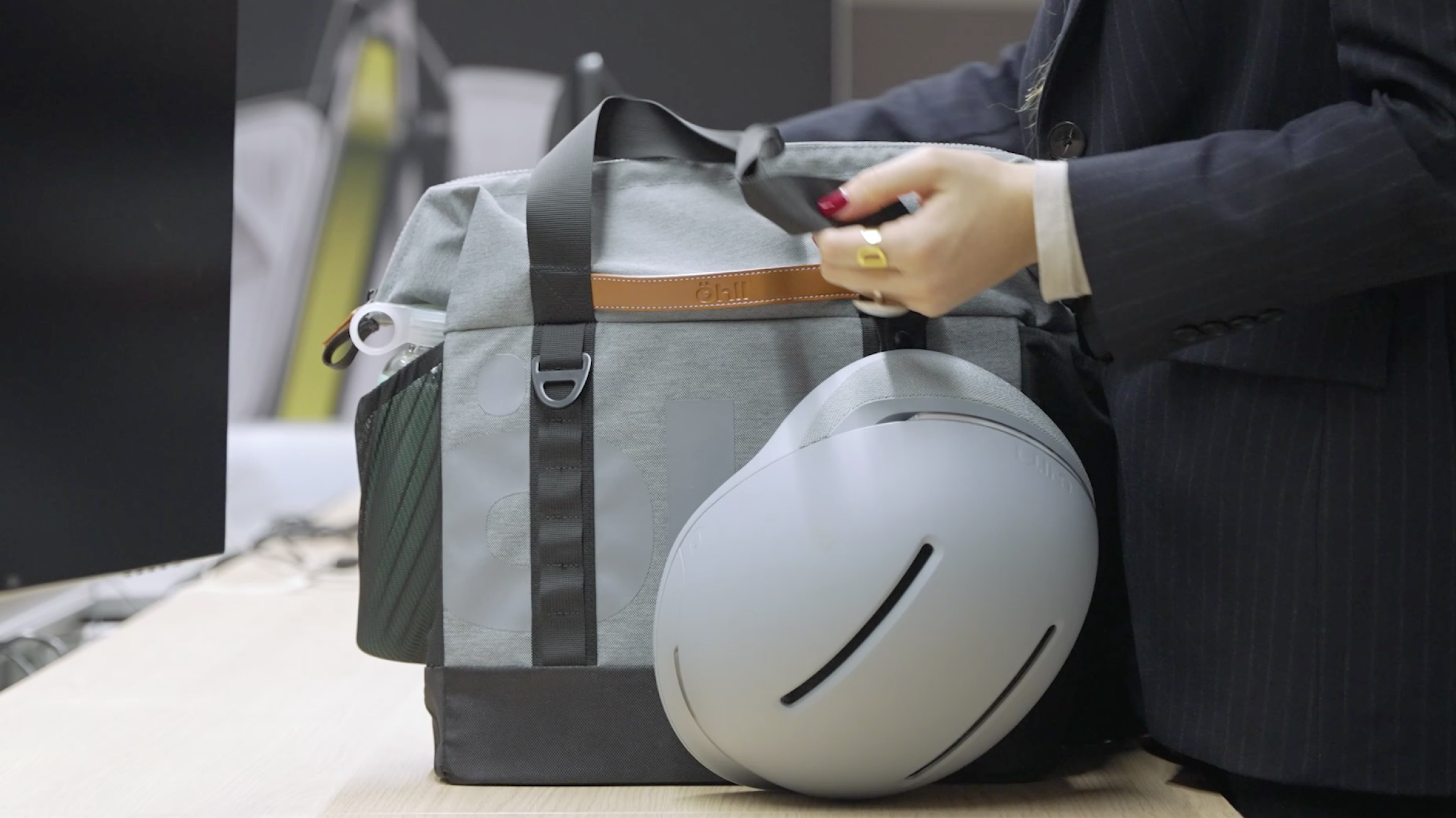 La llevarás en tu patinete eléctrico o bicicleta plegable, pero seguro que también la llevarás en la mano, al hombro o incluso cruzada, gracias a sus asas extralargas y a su correa bandolera que incluimos.